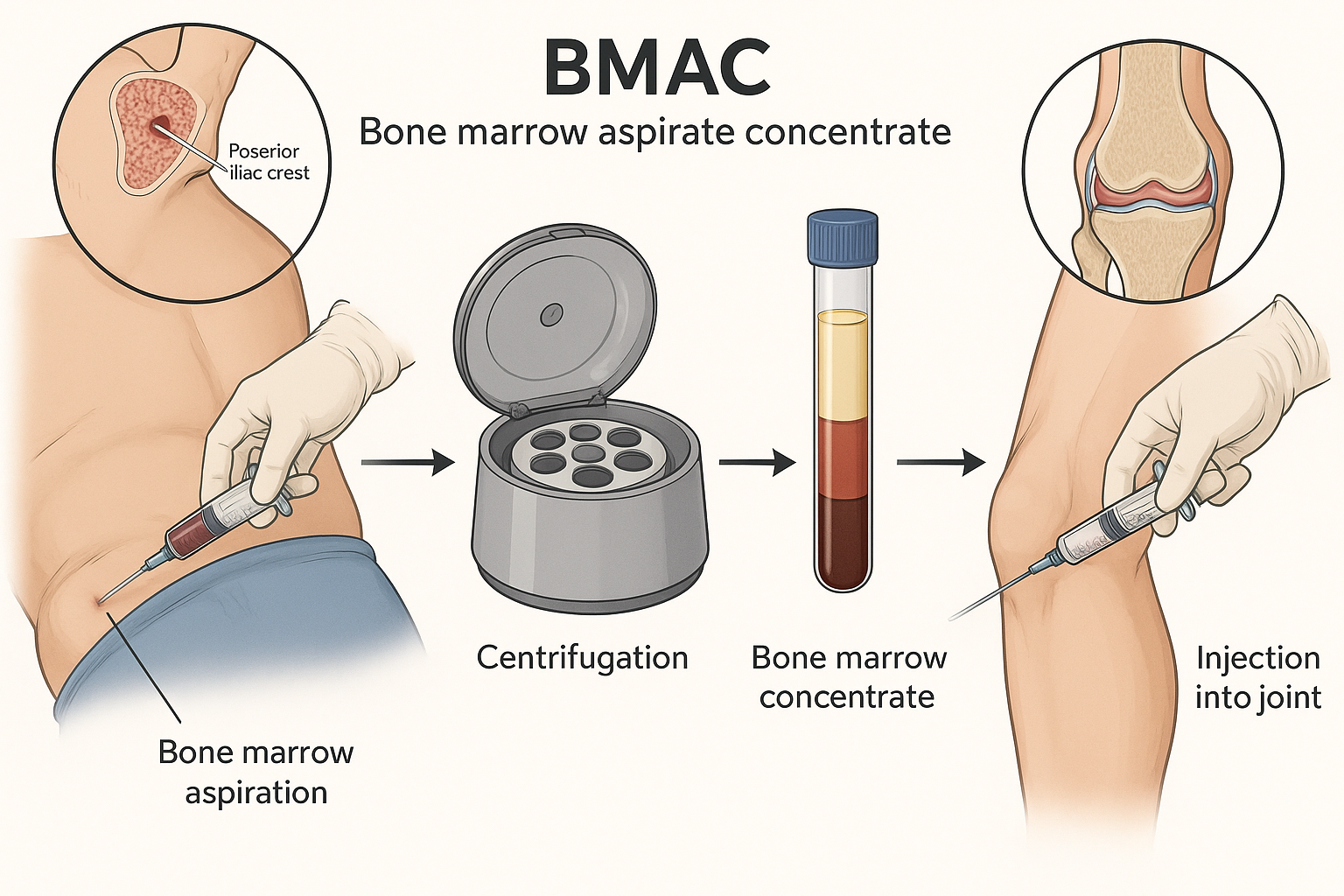 Because it requires a minor surgical harvest and stricter sterility, BMAC is usually performed in a day surgery setting. Costs are higher and it is commonly reserved for motivated patients who have plateaued with simpler injections but are not yet ready for knee replacement.